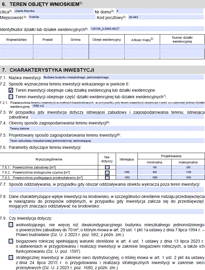 Jak wypełnić wniosek o warunki zabudowy - przykładowo wypełniony wniosek o warunki zabudowy
