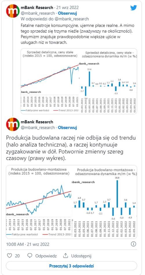 Ekonomiści jeszcze przed publikacją najnowszych statystyk spodziewali się utrzymania dynamiki wzrostu produkcji budowlano-montażowej na podobnym poziomie co miesiąc wcześniej. Średnia typowań zakładała wynik na poziomie 4,3 %. Ekonomiści mBanku oceniają jednak, że produkcja budowlana raczej nie odbija się od spadkowego trendu. Ich zdaniem dynamika będzie kontynuować ruch w dół.