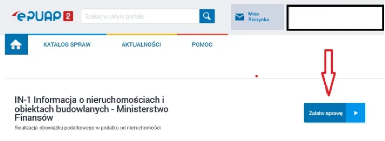 Po wybraniu proponowanej treści „IN-1 Informacja o nieruchomościach i obiektach budowlanych - Ministerstwo Finansów” przekieruje Cię do formularza.