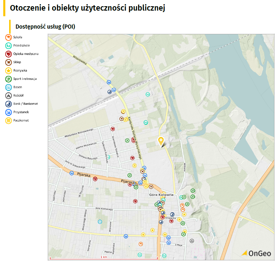 Za pomocą Raportu o Terenie OnGeo możesz dokładnie przeanalizować lokalizację wybranej nieruchomości. Raport dostarcza m.in. informacji o infrastrukturze, terenach zielonych, poziomie hałasu w okolicy oraz dostępności mediów.