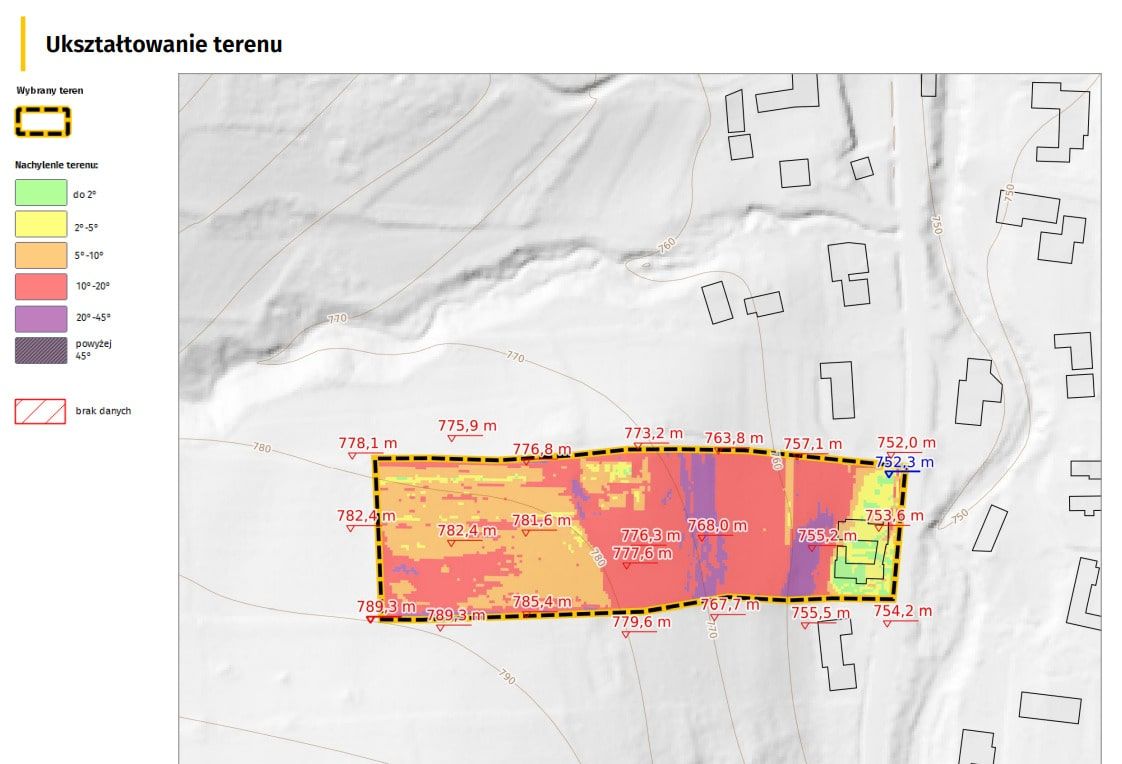 - Ocenę kosztów fundamentowania – tereny strome zwykle generują wyższe koszty.