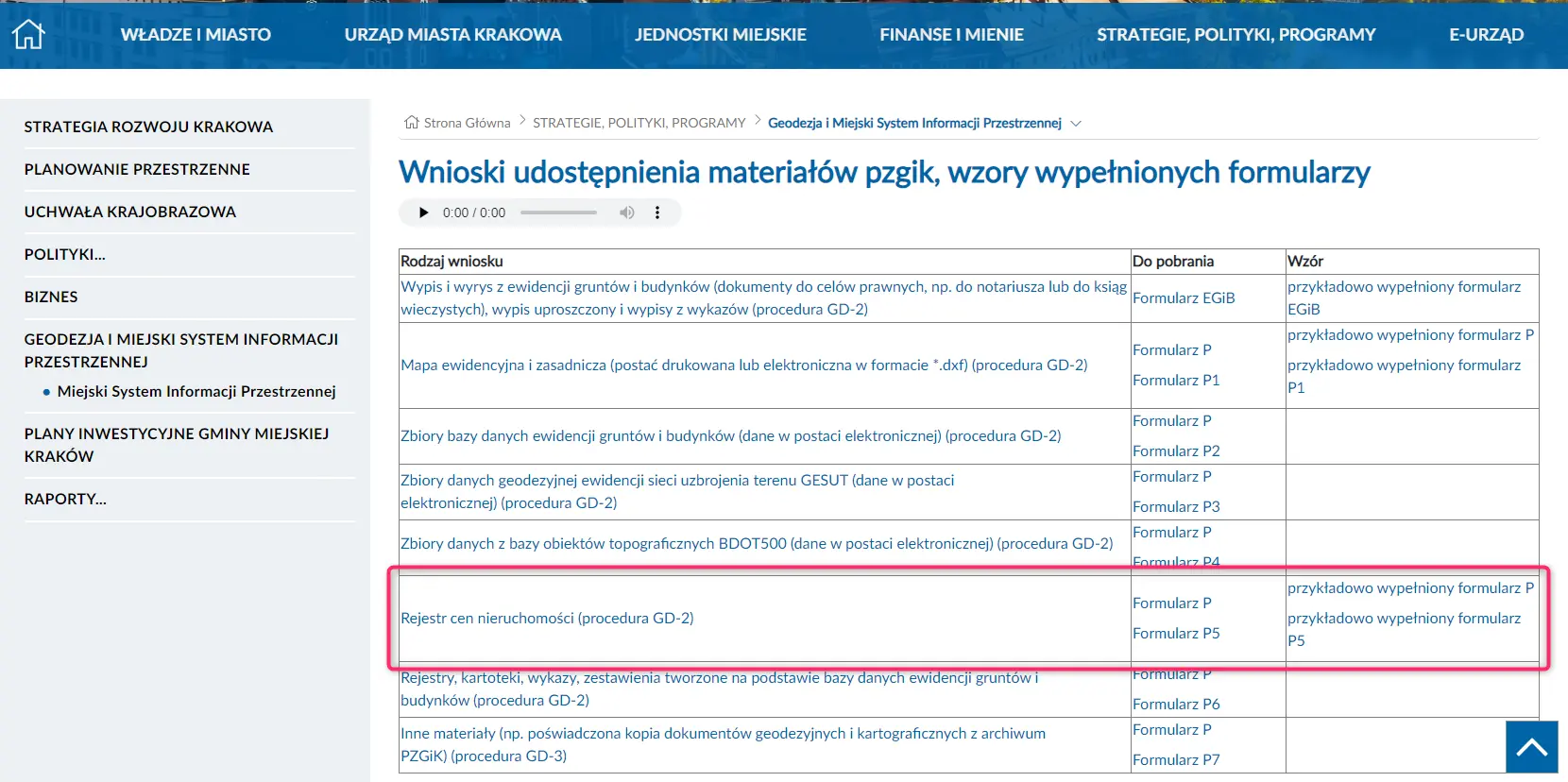 **5. Gdzie znajdę formularze potrzebne do złożenia wniosku o udostępnienie danych z rejestru cen nieruchomości?**