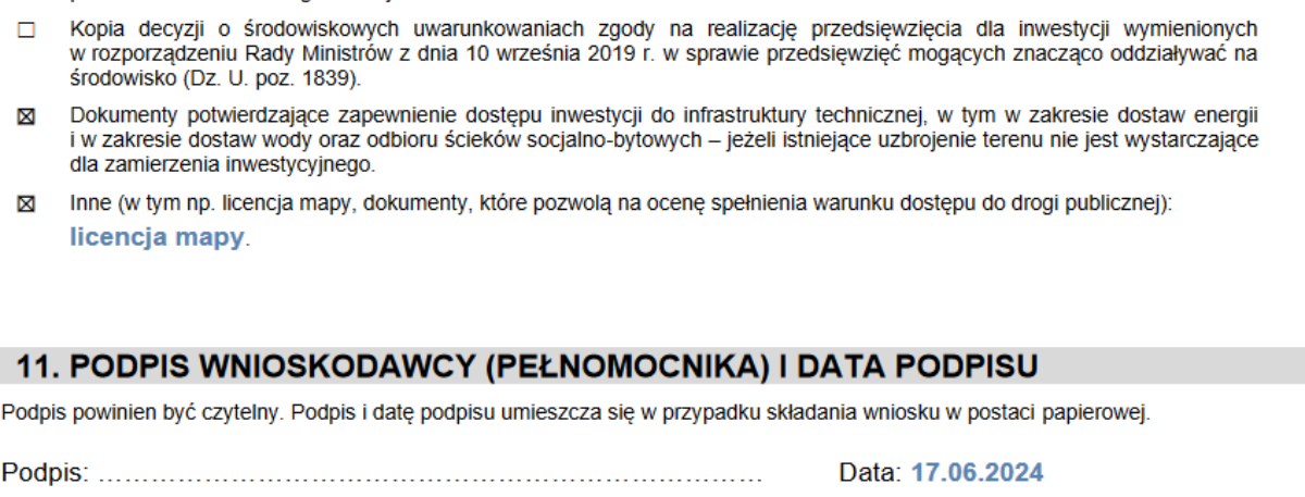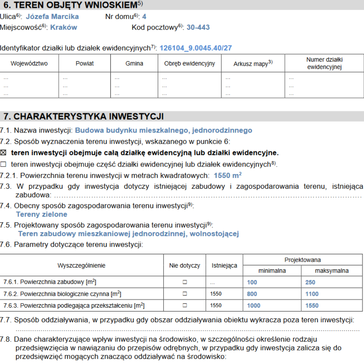 Wzór wypełnienia wniosku o warunki zabudowy 2024r.
