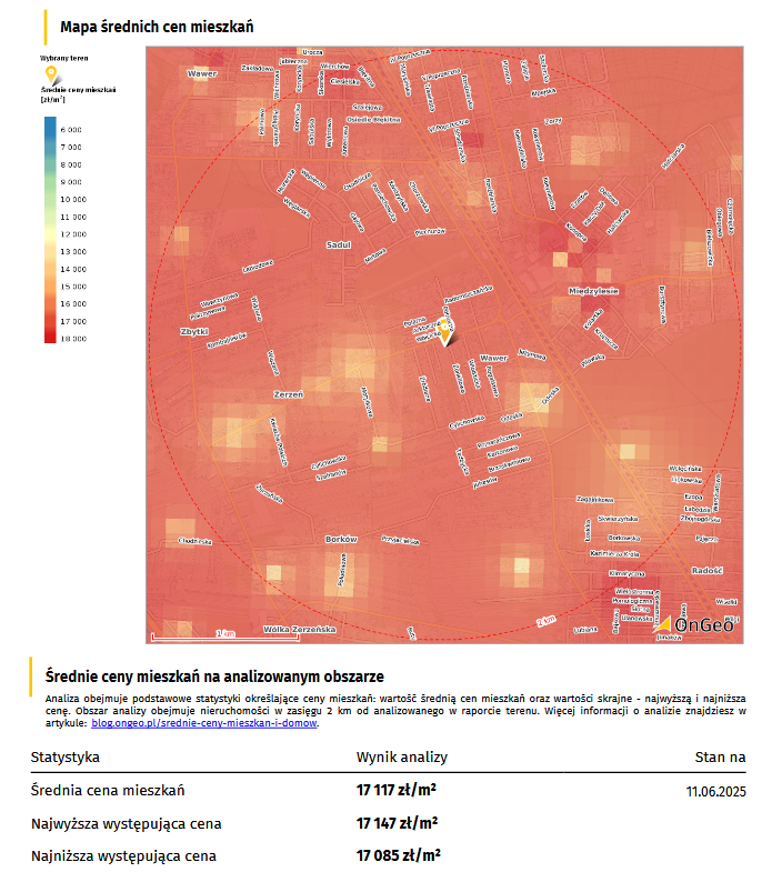 Decydując się na zakup nieruchomości, warto skorzystać z Raportu o Terenie OnGeo.pl, aby sprawdzić średnie ceny nieruchomości w okolicy.