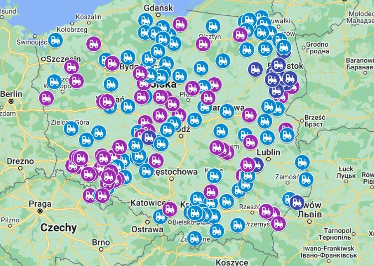 Interaktywną mapę z miejscami, które zostaną zablokowane i gdzie nie będzie możliwości przejazdu, można zobaczyć na oficjalnej stronie protestów utworzonej przez Instytut Gospodarki Rolnej.
