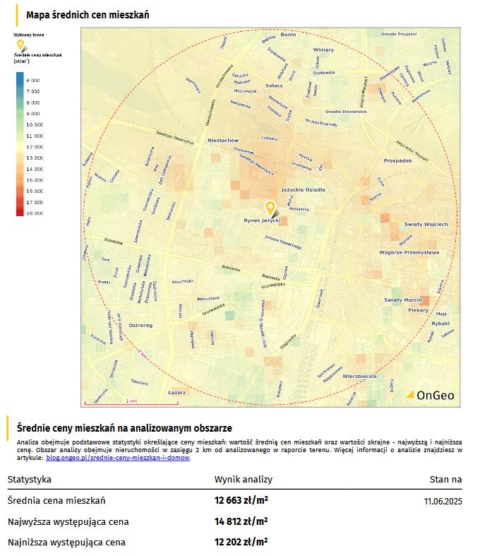 Raport o Terenie OnGeo.pl - Mapa średnich cen mieszkań dla Jeżyce Poznań (zasięg 2 km)