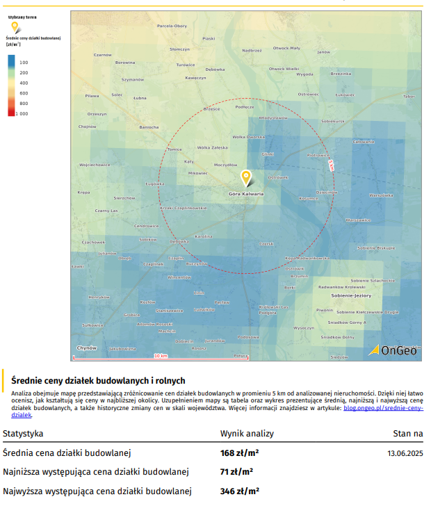 Raport o Terenie OnGeo.pl - szybka analiza cen