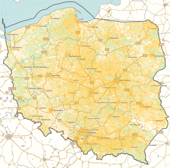 Mapa 500 metrów wiatraków od domów wskazuje jasno, że pomimo zmniejszenia odległości o 200 metrów, nadal mamy niewiele miejsca na nowe inwestycje OZE.