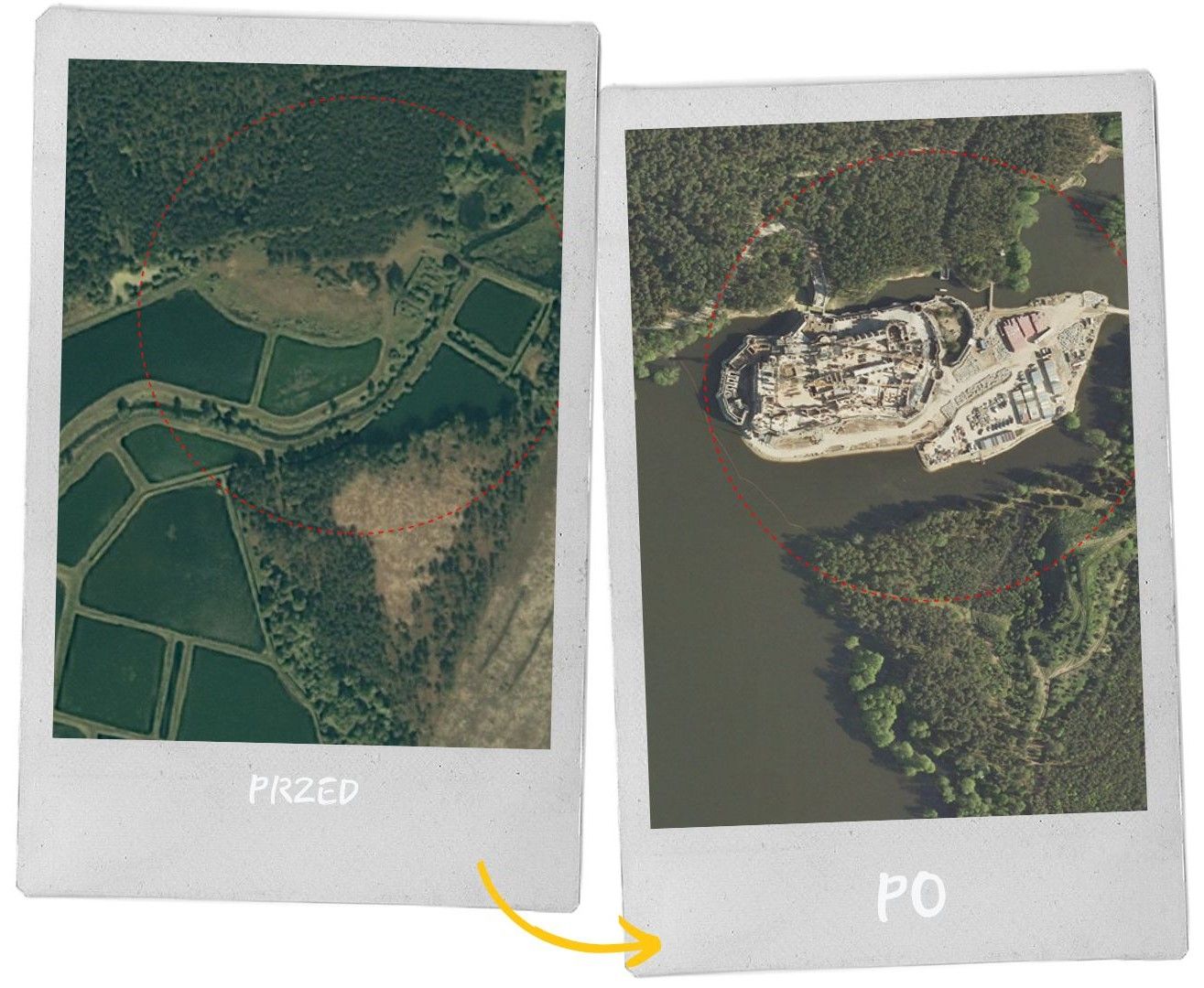 Pobierz Raport archiwalnych zdjęć lotniczych i sprawdź etapy powstawania słynnego oraz kontrowersyjnego zamku w Stobnicy.