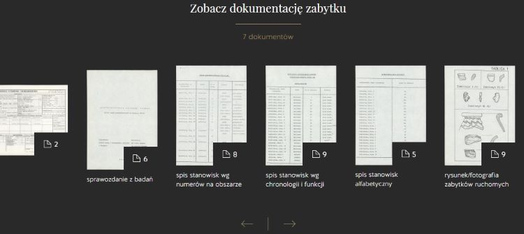 Jeśli chcesz zobaczyć dokumentacje zabytku/stanowiska, przeskroluj na koniec strony gdzie znajdziesz sekcję “Zobacz dokumentacje o zabytku”.