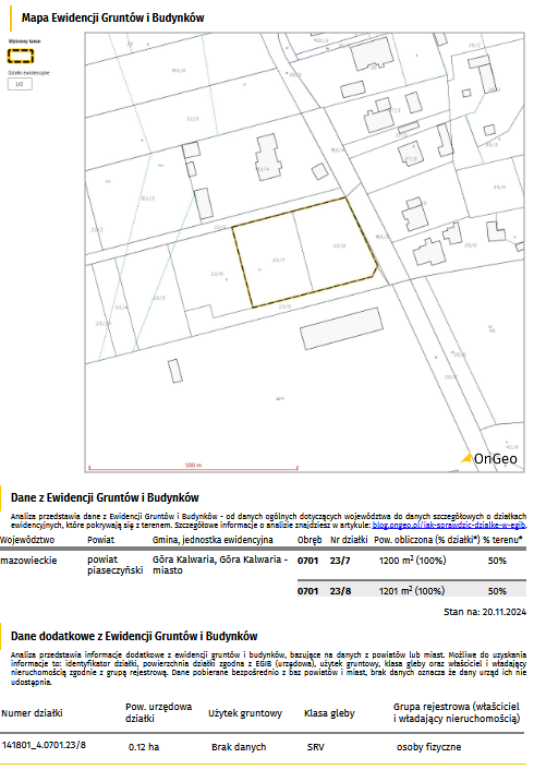 Dane z Ewidencji Gruntów i Budynków w Raporcie o Terenie OnGeo.pl