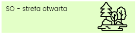 | 12 | SO | strefa otwarta | teren rolnictwa z zakazem zabudowy, teren lasu, teren zieleni naturalnej, teren wód, teren komunikacji, teren infrastruktury technicznej | teren elektrowni wiatrowej, teren elektrowni słonecznej, teren elektrowni geotermalnej, teren elektrowni wodnej, teren biogazowni, teren zieleni urządzonej | - |