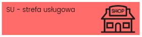 | 4 | SU | strefa usługowa | teren usług, teren komunikacji, teren zieleni urządzonej, teren infrastruktury technicznej | teren składów i magazynów, teren elektrowni słonecznej, teren zieleni naturalnej, teren lasu, teren wód | 30 |