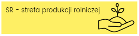 | 7 | SR | strefa produkcji rolniczej | teren produkcji w gospodarstwach rolnych, teren wielkotowarowej produkcji rolnej, teren akwakultury i obsługi rybactwa, teren komunikacji, teren infrastruktury technicznej | teren rolnictwa z zakazem zabudowy, teren biogazowni, teren elektrowni słonecznej, teren elektrowni wiatrowej, teren elektrowni wodnej, teren zieleni urządzonej, teren zieleni naturalnej, teren lasu, teren wód | 30 |