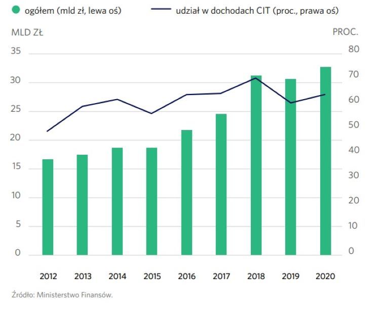- 3,1 % podatku CIT w 2020 r. czyli 748 mln zł.