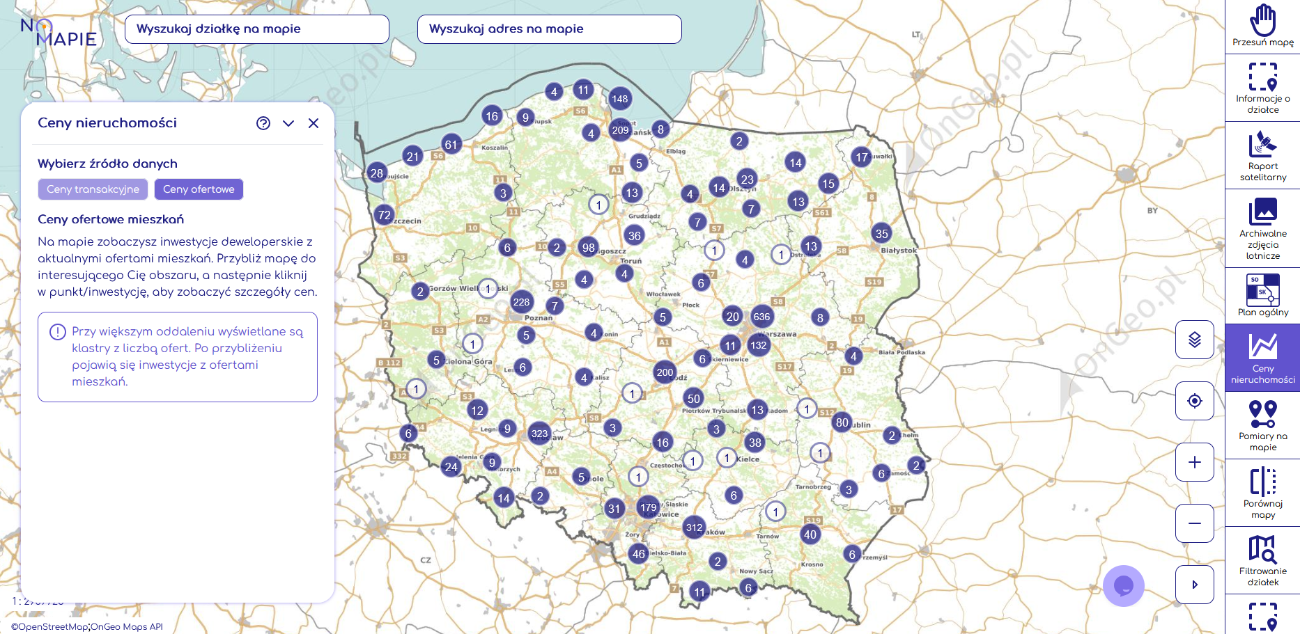 Ceny ofertowe mieszkań w Geoportalu Na Mapie