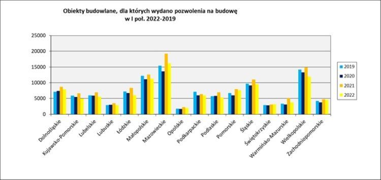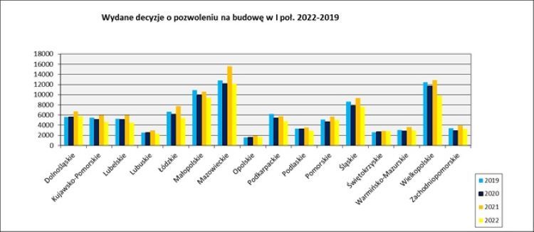 Główny Urząd Nadzoru Budowlanego wydał komunikat podsumowujący ruch budowlany 2022. W I połowie 2022 roku wydano ogółem 84 909 decyzji o pozwoleniu na budowę dla 108 920 obiektów budowlanych. W I półroczu 2021 r. takich wniosków było 105 195 dla 128 631 obiektów, natomiast w I półroczu 2020 r. wydano 89 301 pozwoleń dla 104 816 obiektów. Jest to spadek na poziomie 19,3 % ogólnej liczby wydanych pozwoleń na budowę w stosunku do analogicznego okresu w 2021 r.