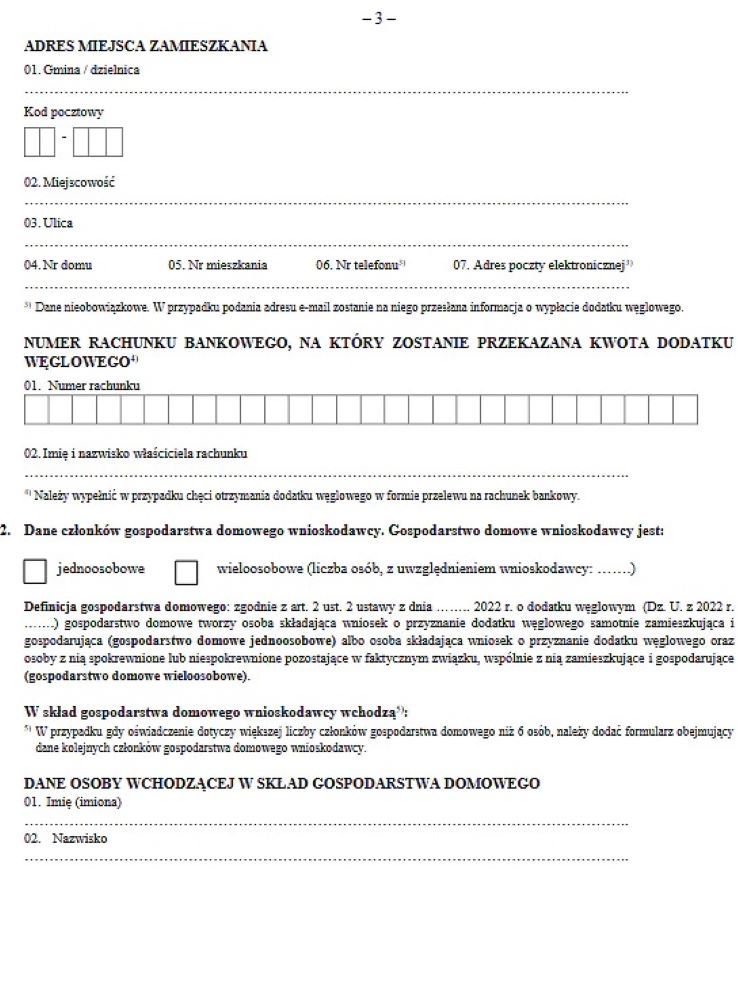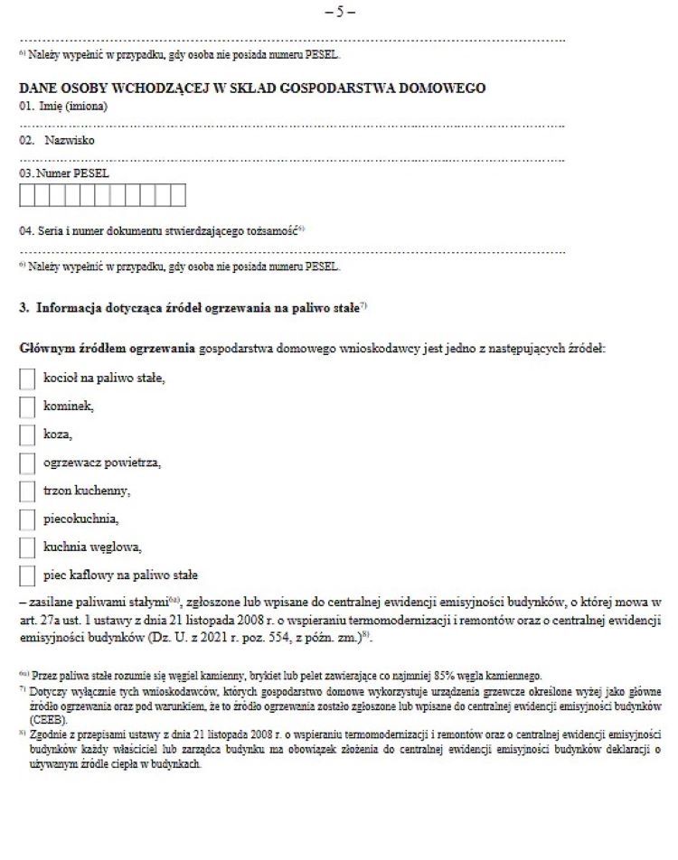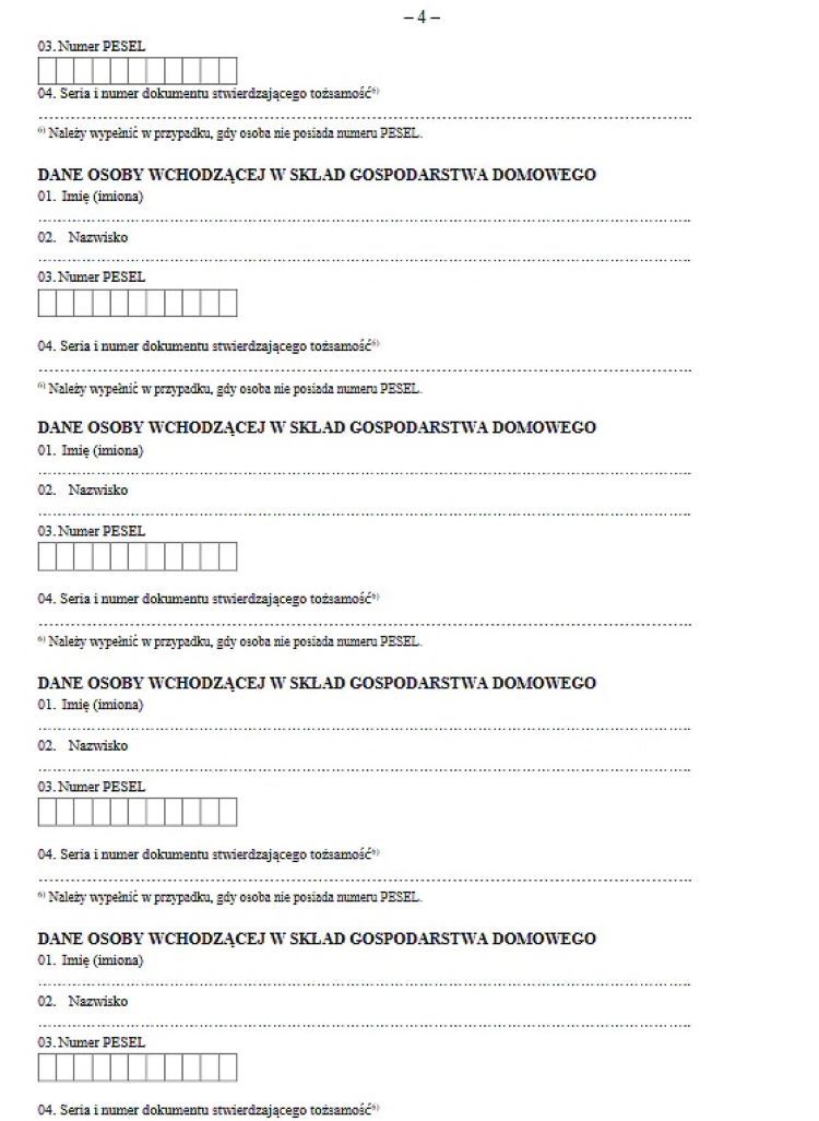 Wymagane są także dane wszystkich osób wchodzących w skład gospodarstwa domowego, aby urząd mógł upewnić się, że więcej osób z jednego gospodarstwa nie złożyło wniosku. Pieniądze na węgiel przypadają bowiem na całe gospodarstwo domowe.